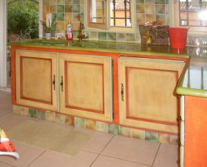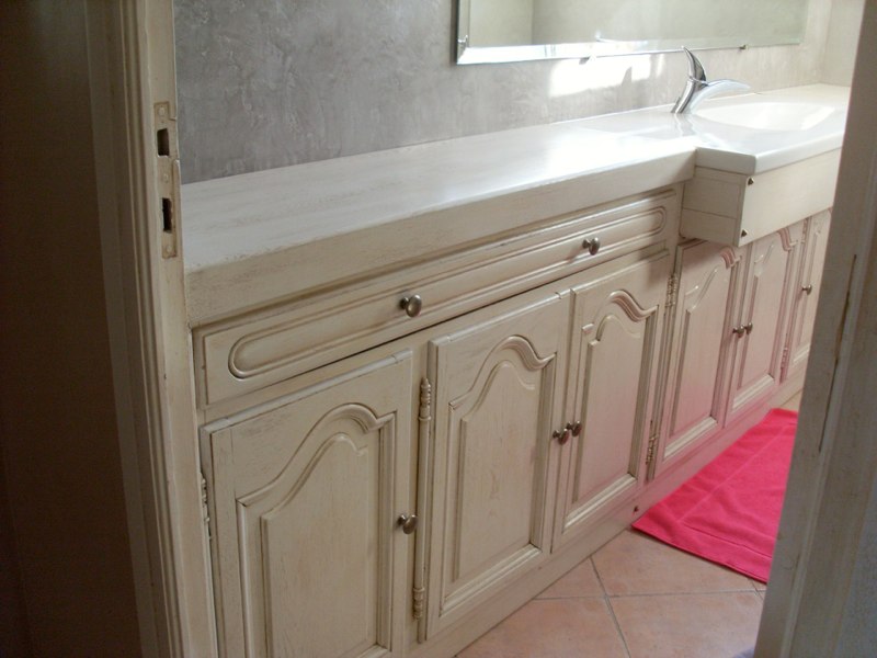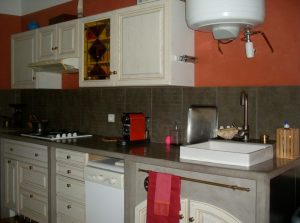 Agencement cuisine: patine sur boiserie et béton ciré