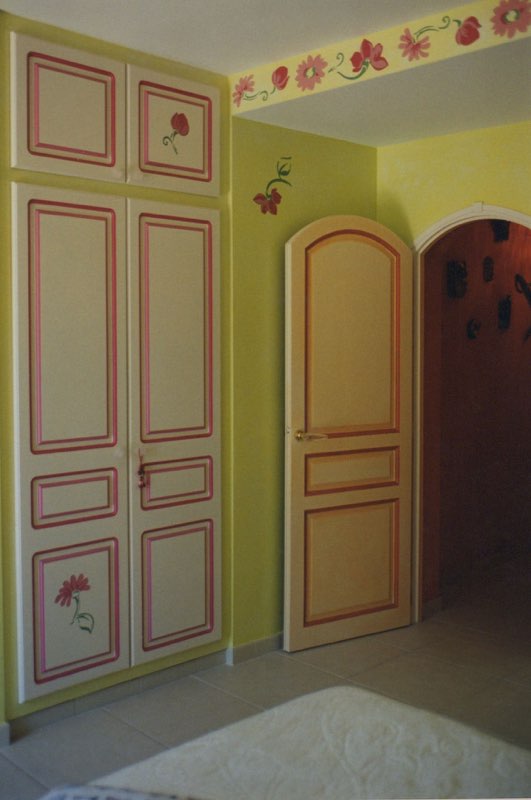 Patine murs, peinture style Art Déco sur portes